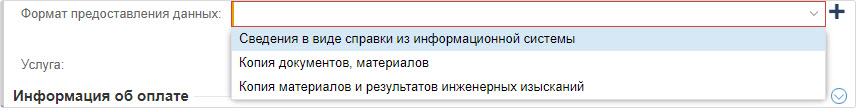[Формат предоставления данных] – поле заполнится автоматически на основании информации, указанной в таком же поле в карточке «Запрос сведений ГИСОГД»;