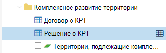 Загрузите в панель представления реестр Территории, подлежащие комплексному развитию.